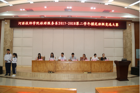 旅游服务系2017-2018学年第二学期“模范班级”竞选大会圆满落幕 为培养同学们的团结协作意识,加强班级凝聚力,旅游服务系于2018年4月3日晚在图书馆报告厅举行举办了“模范班级”竞选活动。旅游服务系主任谢龙桂老师、副主任陈伟宁老师、副主任罗丹老师、团支书记曾晓君老师...