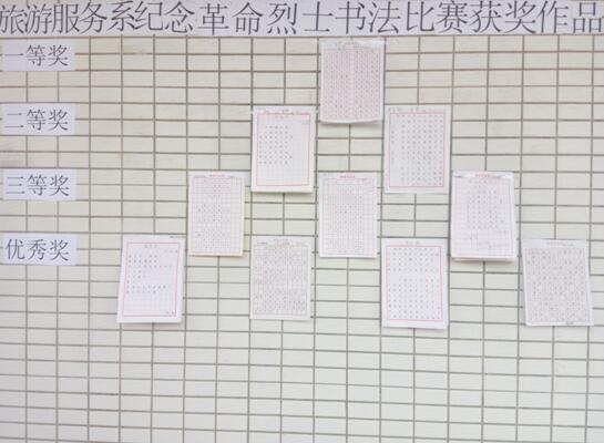 旅游服务系“传承五四精神 展示青春风采”纪念五四运动98周年系列活动之三: 旅游服务系举办“纪念革命烈士”书法比赛 为缅怀革命先烈,继承革命先烈的光荣传统,弘扬爱国主义精神。旅游服务系举办“纪念革命烈士”书法比赛。(图一)获奖作品 &n...