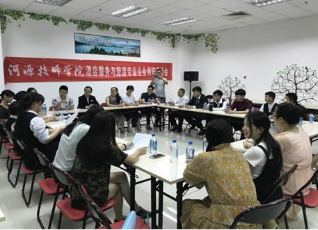 深入企业一线,掌握学生实习动态 为进一步掌握学生跟岗、顶岗实习情况,暑假期间,旅游服务系谢龙桂主任、陈伟宁副主任与烹饪、幼儿教育、饭店服务三个专业的教师开展了深入企业开展调研活动。烹饪、饭店服务专业教师先后到河源市迈豪国际酒店、河源市万绿湖东方国际酒店调研...