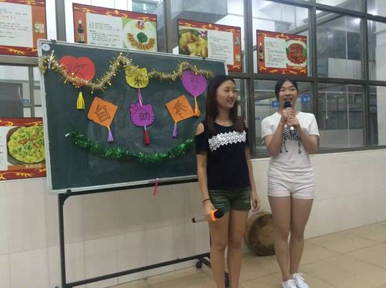 (图九主持人丘文琪和王舒淇在组织大家玩游戏)