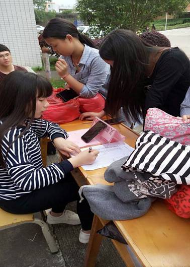 14级幼师2班委积极响应学校“学雷锋,做好事”的号召,于3月30日至4月5日在学校E栋宿舍楼下开展了“1+衣”爱心衣物捐赠活动。在班委们的积极组织宣传下,前来咨询和捐赠衣物的同学络绎不绝。