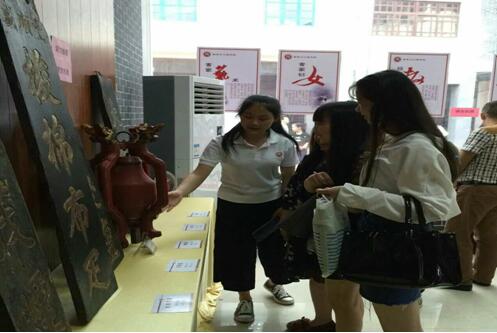 此次活动由太平古街和鸿志中基客家文化博物馆共同举办,在客家文物展厅展出了鸡公碗、礼盒、手提箱、寿牌、陶器、客家第一福等客家文物。我院2015级导游专业李飞鸿、朱迁妮、黎小洁和黄小鹏4名学生作为客家文物展的义务讲解员,为前来参观的广大游客讲解了客家文物的历史与文化,详细而耐心地解答游客的疑问。他们认真的态度和专业的讲解赢得客家文化博物馆馆长和游客的高度认可,被赞具有客家人吃苦耐劳的优秀品质。