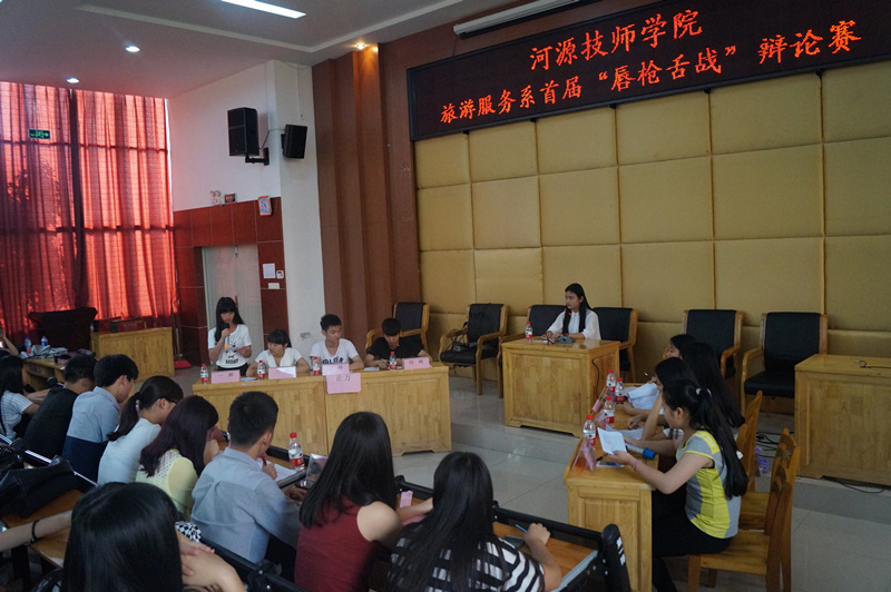 比赛前期,我系团学会对所有参赛选手进行比赛规则和技巧进行培训。同学们进过充分的准备,在辩论赛场上展示自己的风采。在初赛第五场比赛中,正方14旅游1班的观点是“宽松式管理对中职生利大于弊”,他们从多角度、多方面论述本方观点,妙语连珠,举出诸多事例对自己的观点进行佐证。