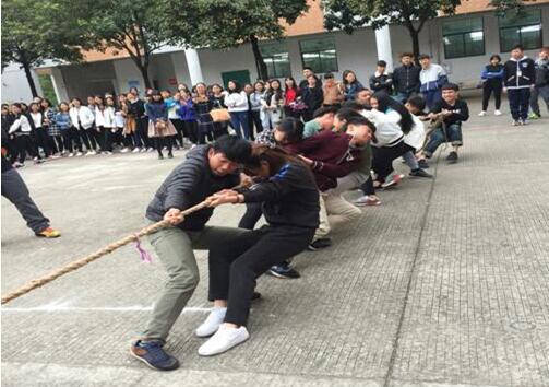 当比赛的哨声一响起,参赛队员一起喊着节拍“一二、一二”,双手握紧长绳,憋足了劲往后拉。啦啦队和班主任们也在一旁使劲喊着“加油”助阵。呐喊声、加油声此起彼伏,飘荡在整个广场上空。经过激烈的较量,最终15烹饪1班获得冠军,16旅游1班获得亚军,15幼师高级1班获得季军。