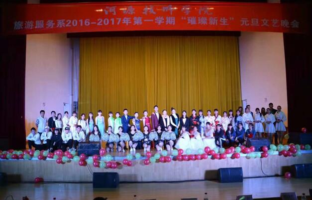 2016年12月22日晚,旅游服务系在体育馆举办了2016—2017年第一学期“璀璨新生”元旦文艺晚会。出席本次晚会的有旅游服务系系主任谢龙桂老师,副主任陈伟宁老师,系团总支书记曾晓君老师,朱燕青老师、李艳老师、翟文老师、罗爱玲老师。旅游服务系全体学生和班主任一起观看了晚会。