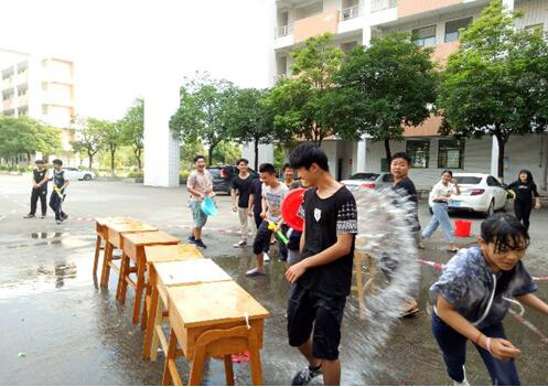 随后,旅游服务系团学会成员按分组各自拿好道具,开始“水球大战”。各个成员积极参与,有的拿着装满水的气球向竞争对手跃跃欲试,有的拿着桶、盆等工具谨慎地把水接好,有的则作为小组的防卫时刻警惕着对手的攻击……场面十分激烈,同学们都沉浸在游戏的欢乐中。