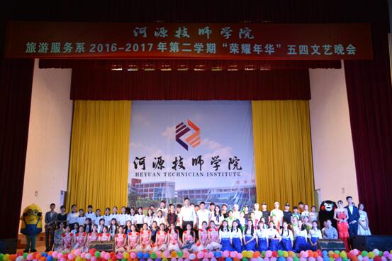 2017年4月27日晚,旅游服务系在体育馆举办了2016-2017年第二学期“荣耀年华”五四文艺晚会。旅游服务系主任谢龙桂、副主任陈伟宁、副主任罗丹、系团总支书记曾晓君出席,旅游服务系舞蹈、声乐专业老师担任评委,并与我院其他教学系团总书记,团学会学生干部代表以及旅游服务系全体师生一起观看本场晚会。