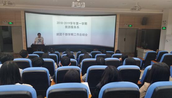 2019年1月9日晚,旅游服务系班团干部期末总结会在3D导游实训室举行。本次总结会由旅游服务系副主任陈伟宁主持。